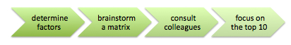 Select the factors that are most relevant in your first attempt. I especially recommend you include the last – creating or enhancing shared value. This is the factor that most aligns your stakeholder engagement with the win-win orientation of Sustainability 2.0.