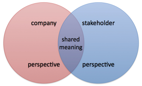 This simple and elegant model shows us that engagement happens when our understanding of an issue is consistent with the person we are communicating with. As engagement deepens, we can expect the overlapping area of shared meaning to grow.