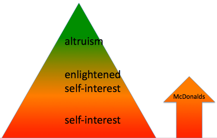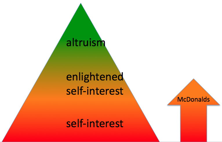 When I look at McDonalds through the three drivers lens, there is sufficient evidence that they are operating in the enlightened self-interest zone. Another way to check perceptions is to compare them to other fast food chains. Where I live, I don’t see much evidence any of McDonalds competitors moving into this zone. What do you see?
